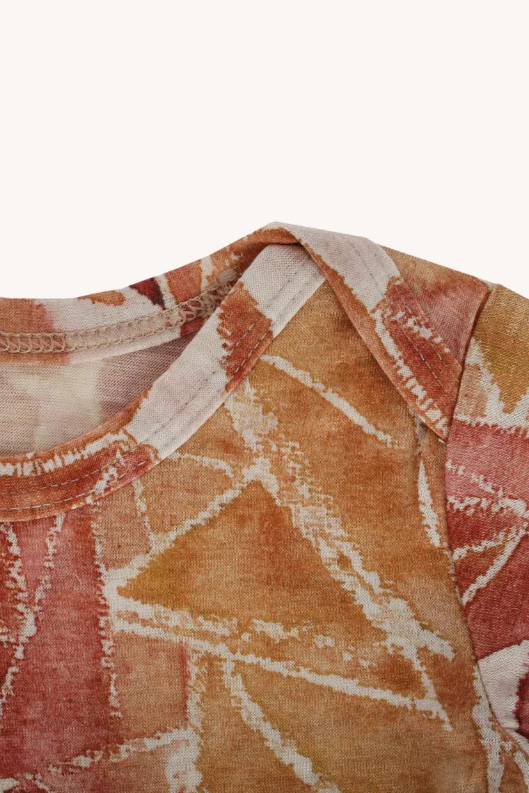Ručně malovaný vzor ginger gorpcore dělá z každého kousku originál. Jemné růžovo-béžové tóny navíc pomáhají skrýt drobné skvrny.