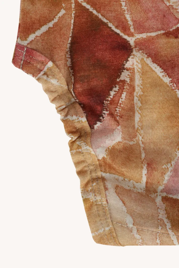Originální ručně malovaný vzor ginger gorpcore v odstínech brudného růžového a béžového dodává body jemný, hravý a teplý vzhled. Tenké merino body pro miminka je ideální jako první vrstva – hřeje, ale zároveň dýchá a odvádí vlhkost od pokožky.