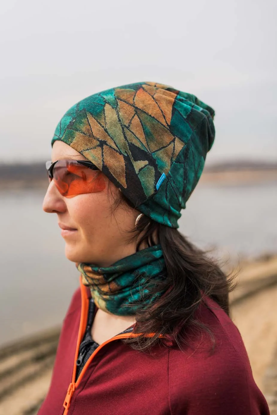 Lehká a funkční čepice navržená pro aktivní pohyb. Dvojitý jemný úplet z 100% merino vlny poskytuje příjemné teplo, ale zároveň skvělou prodyšnost, takže se v ní budete cítit komfortně i při vyšší zátěži. Vzor green gorpcore dodává čepici moderní outdoorový vzhled inspirovaný přírodou.