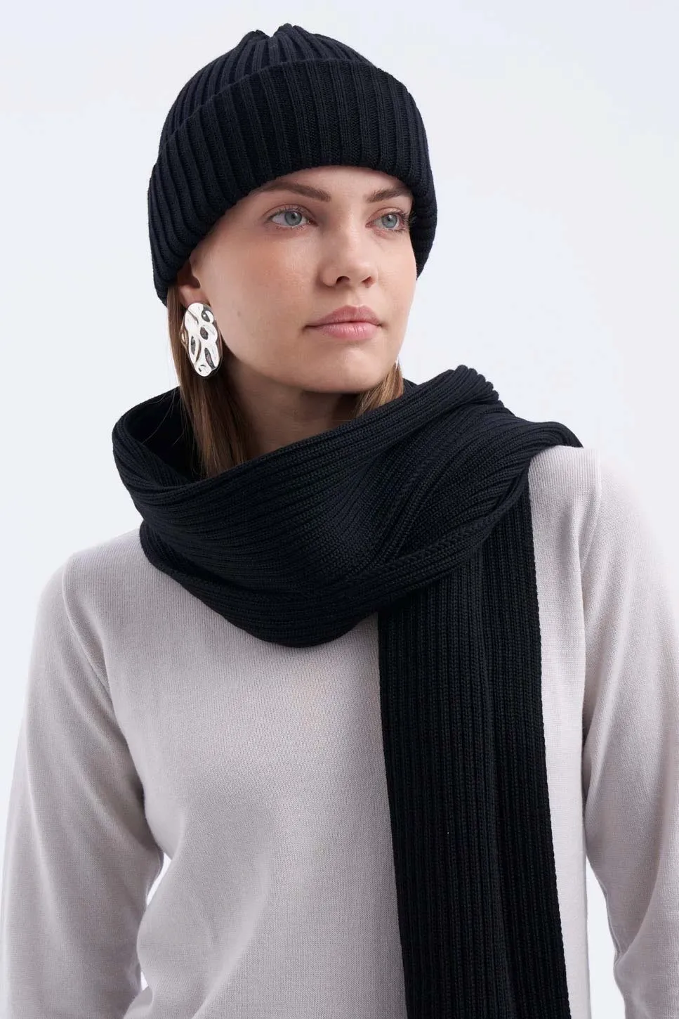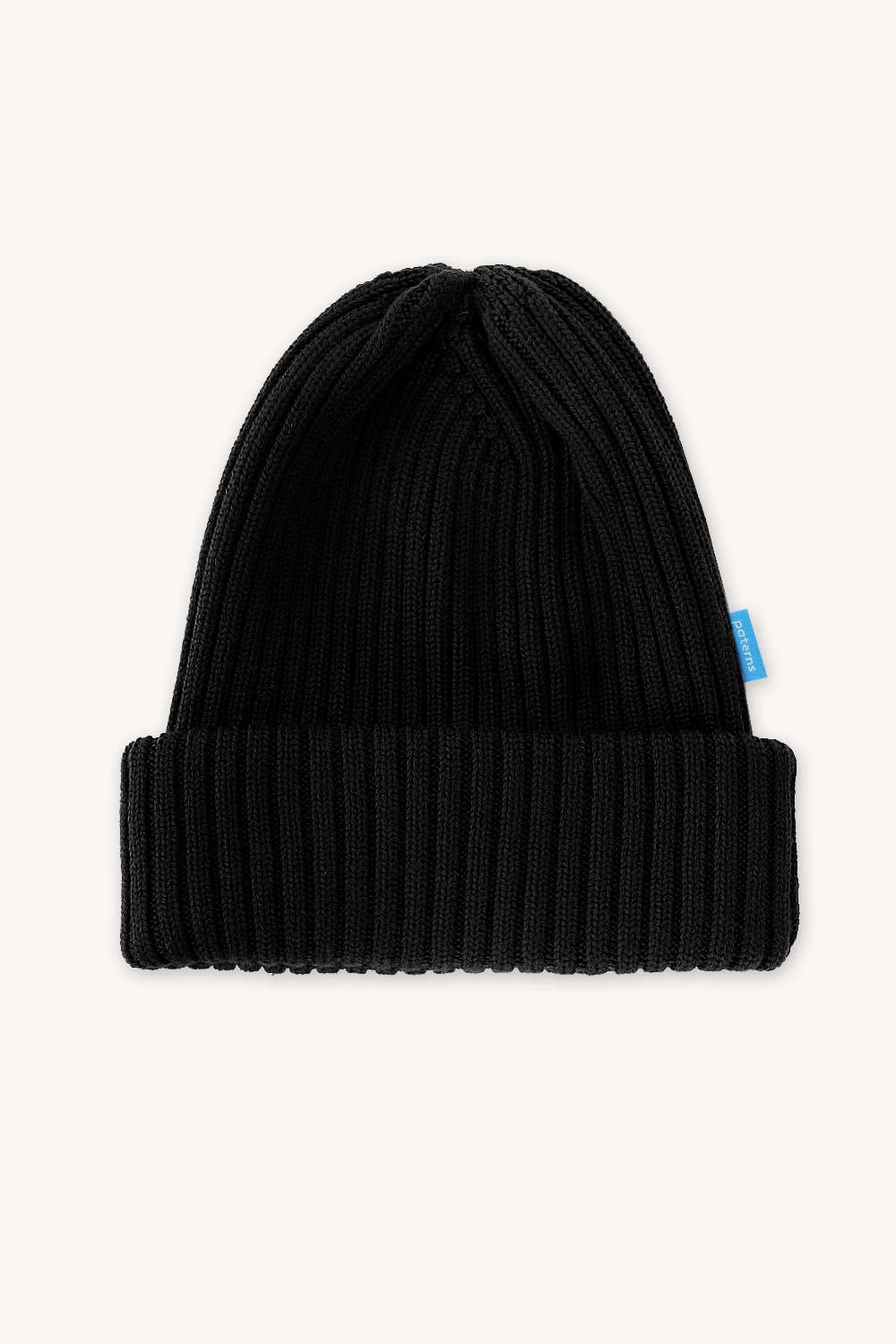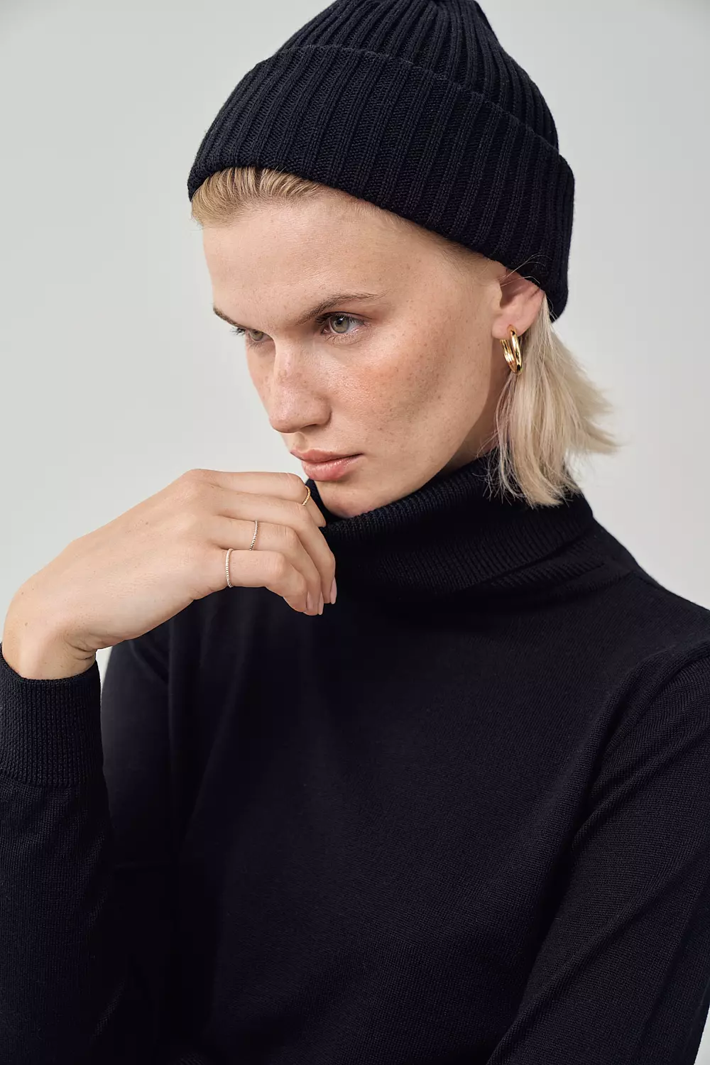 Černá merino čepice se žebrovaným úpletem – hřejivá, měkká a nadčasová