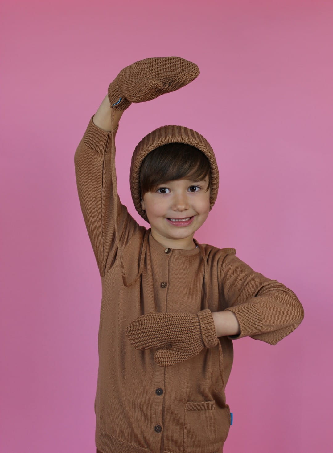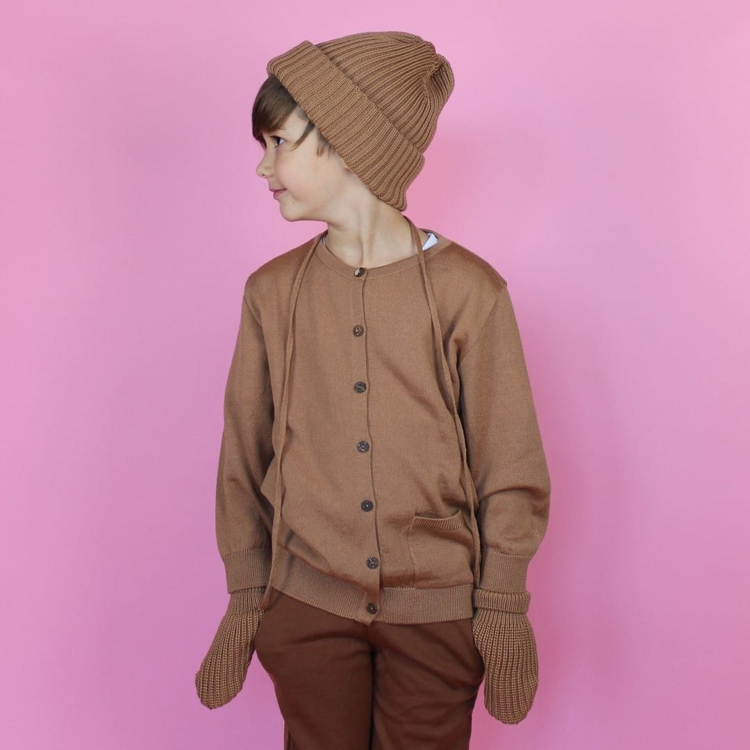 Dětská čepice z jemné merino vlny v krásné karamelové barvě. Vlna z merynů je mimořádně měkká, příjemná na dotek a neškrábe – takže se nemusíš bát, že si dítě bude stěžovat, že ho čepice kouše nebo svědí na čele.