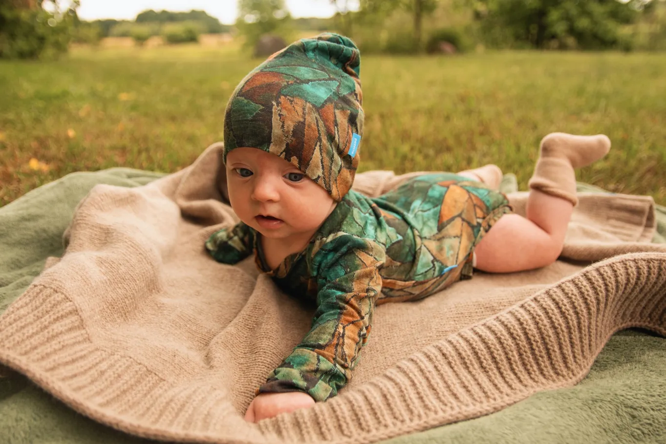 Lehká, jemná a maximálně prodyšná čepička navržená pro miminka, která potřebují pohodlí a stálou teplotu po celý rok. Vzor green gorpcore dodává čepičce moderní outdoorový vzhled, přesto zůstává dokonale měkká a jemná k pokožce.