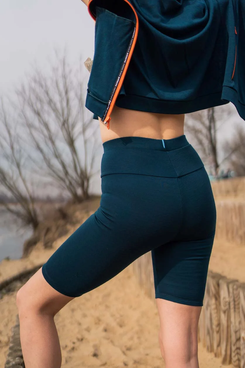 Stylové a funkční zároveň – dámské cyklistické šortky z 100 % merino vlny v barvě petrol s vysokým pasem kombinují přirozené vlastnosti vlny s moderním designem. Ideální pro sport, turistiku i každodenní nošení – poskytují pohodlí, teplo a volnost pohybu.
