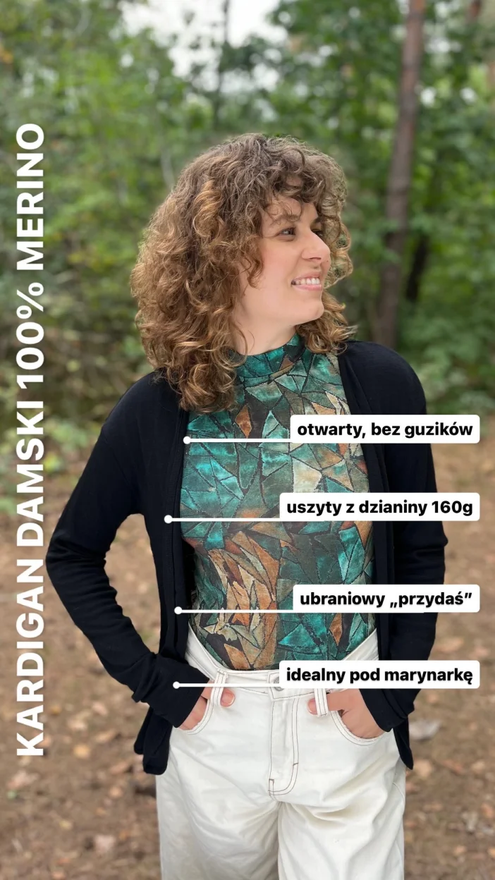 Lehký, tenký a neuvěřitelně příjemný – černý dámský kardigan z 100 % merino vlny je celoroční kousek, který si zamiluješ. Skvěle se hodí do práce, na cesty i pro chvíle odpočinku doma. Jednoduchý, elegantní a funkční – přesně ten svetr, který si ráno přehodíš přes ramena a už nebudeš chtít sundat.