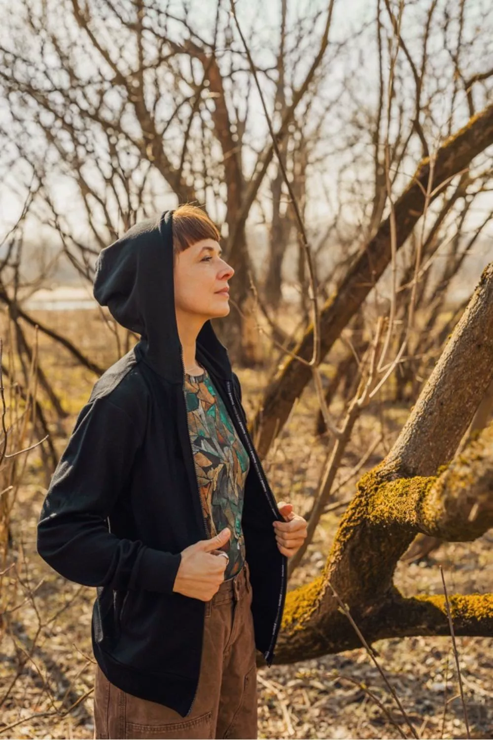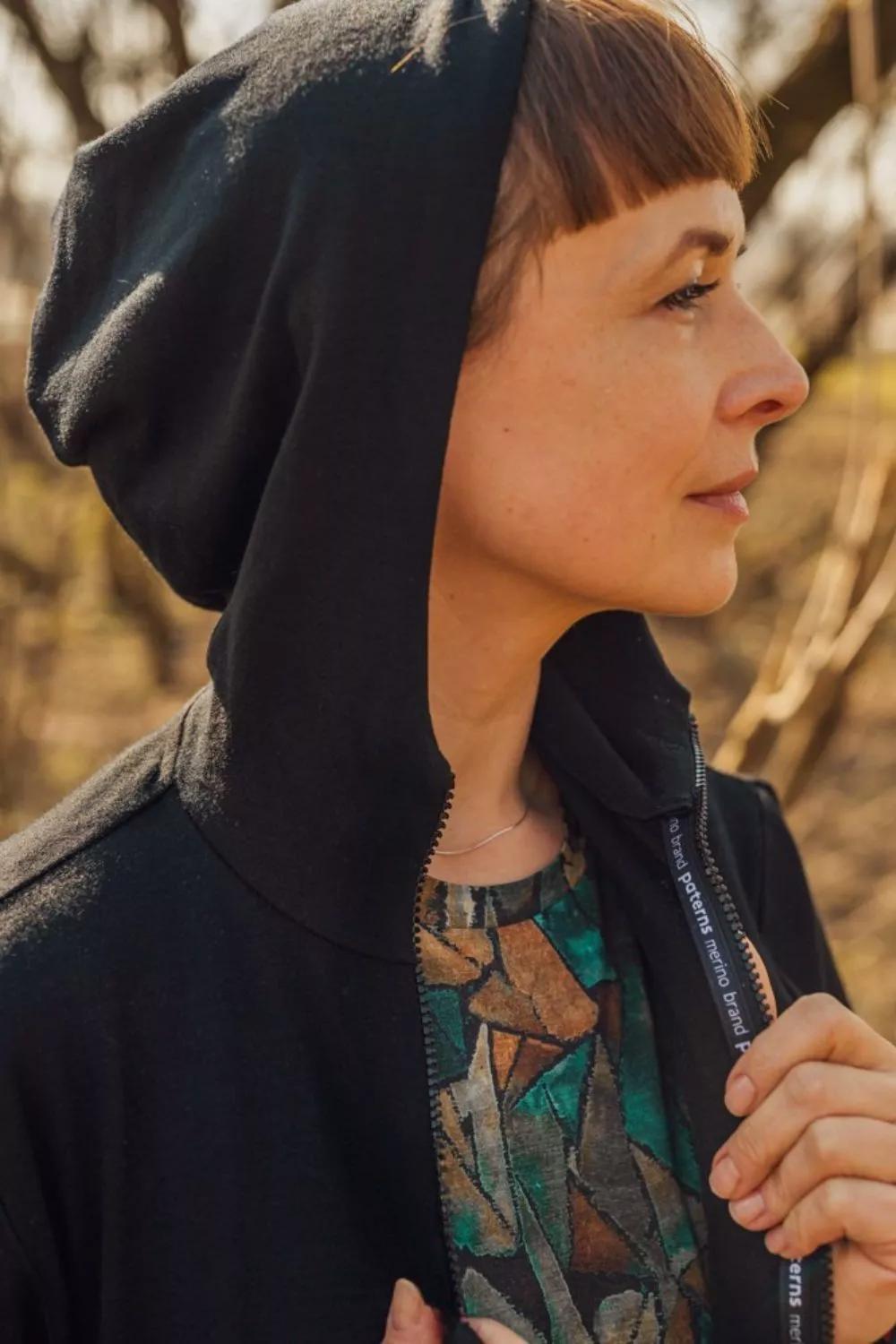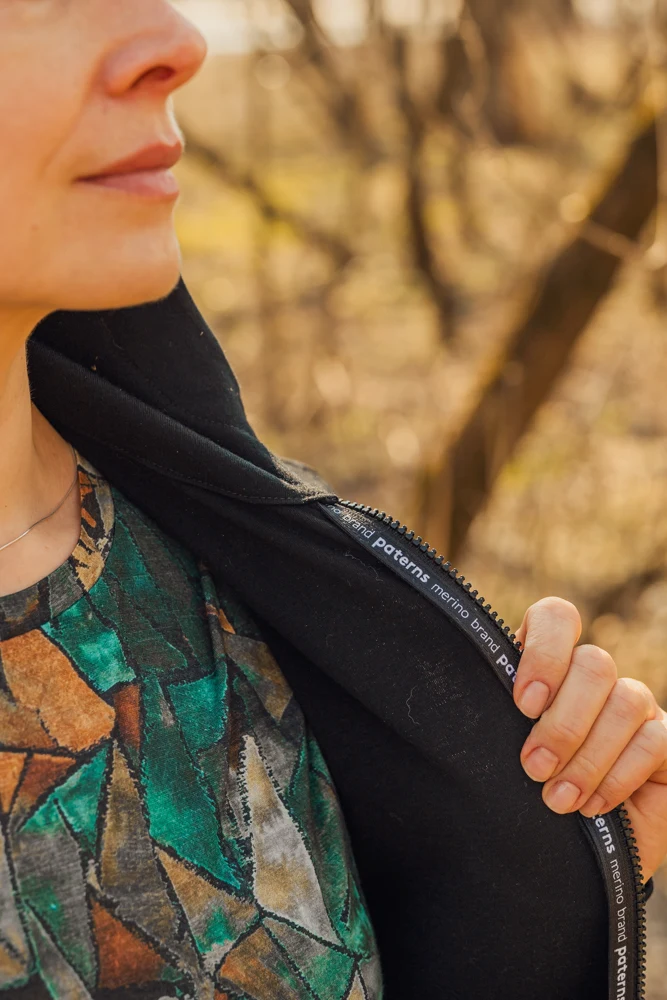 Zapínání na zip – plynulé, ideální pro vrstvení.