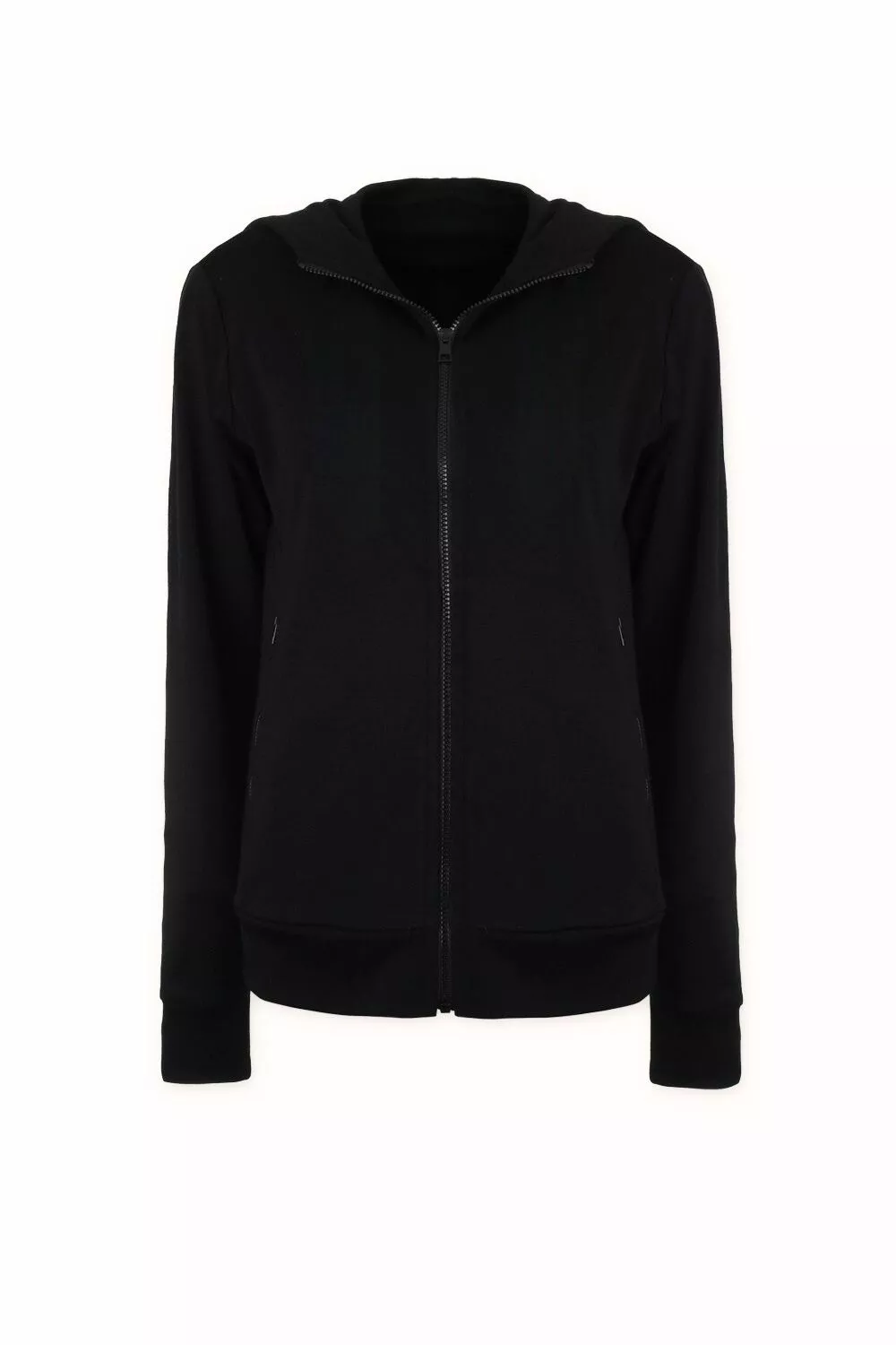 Merino mikina na zip s kapucí dámská – černá (250 g)