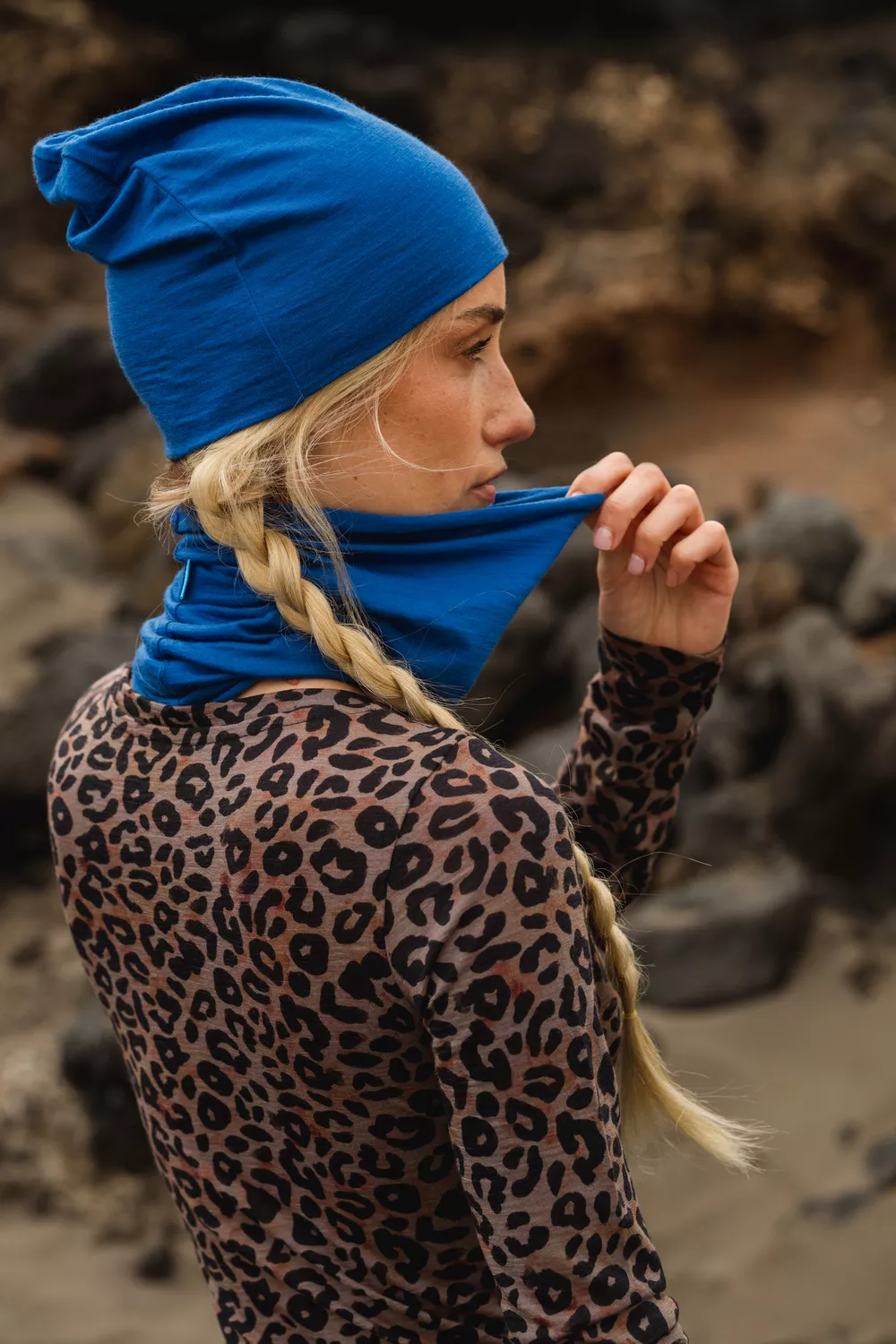 Kobaltový modrý multifunkční nákrčník ze 100% merino vlny je ušitý z nejjemnější pleteniny s gramáží 135 g/m². Tento lehký a prodyšný merino nákrčník v sytě modrém (kobaltovém) odstínu má široké využití – můžete ho nosit jako čepici, kuklu, komín, čelenku nebo potítko na ruku. Bez problémů se vejde pod cyklistickou i lyžařskou helmu, proto je ideální jako funkční nákrčník na sport.