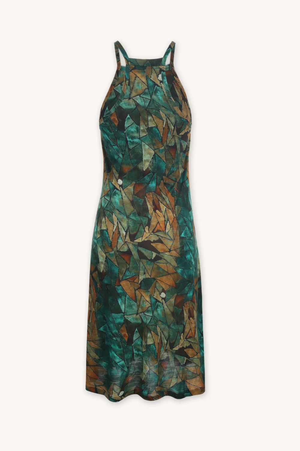 Vyšší přední výstřih a perfektně vykrojená záda, která zvýrazňují ramena a lopatky, dodávají šatům charakter. Výstřih i zadní lem jsou precizně zakončené jemnou plisou.