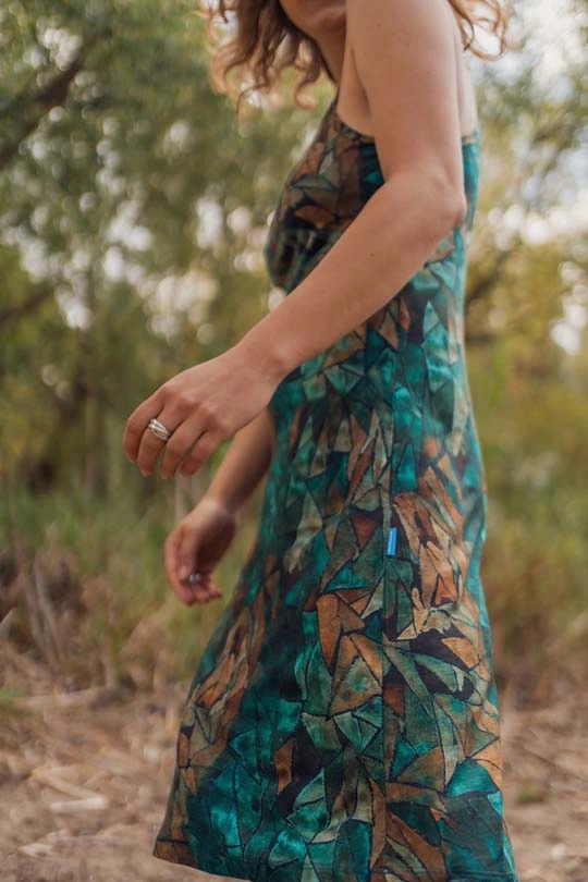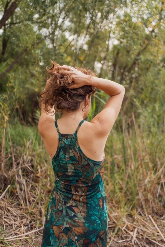Objev své nové oblíbené letní šaty – ušité ze 100% přírodní, prodyšné merino vlny, která skvěle reguluje teplotu, odvádí vlhkost a zůstává bez zápachu i při vysokých teplotách. Tento model spojuje funkčnost merina s promyšleným střihem a originálním designem ve vzoru green gorpcore, který vznikl jako ručně malovaný motiv.