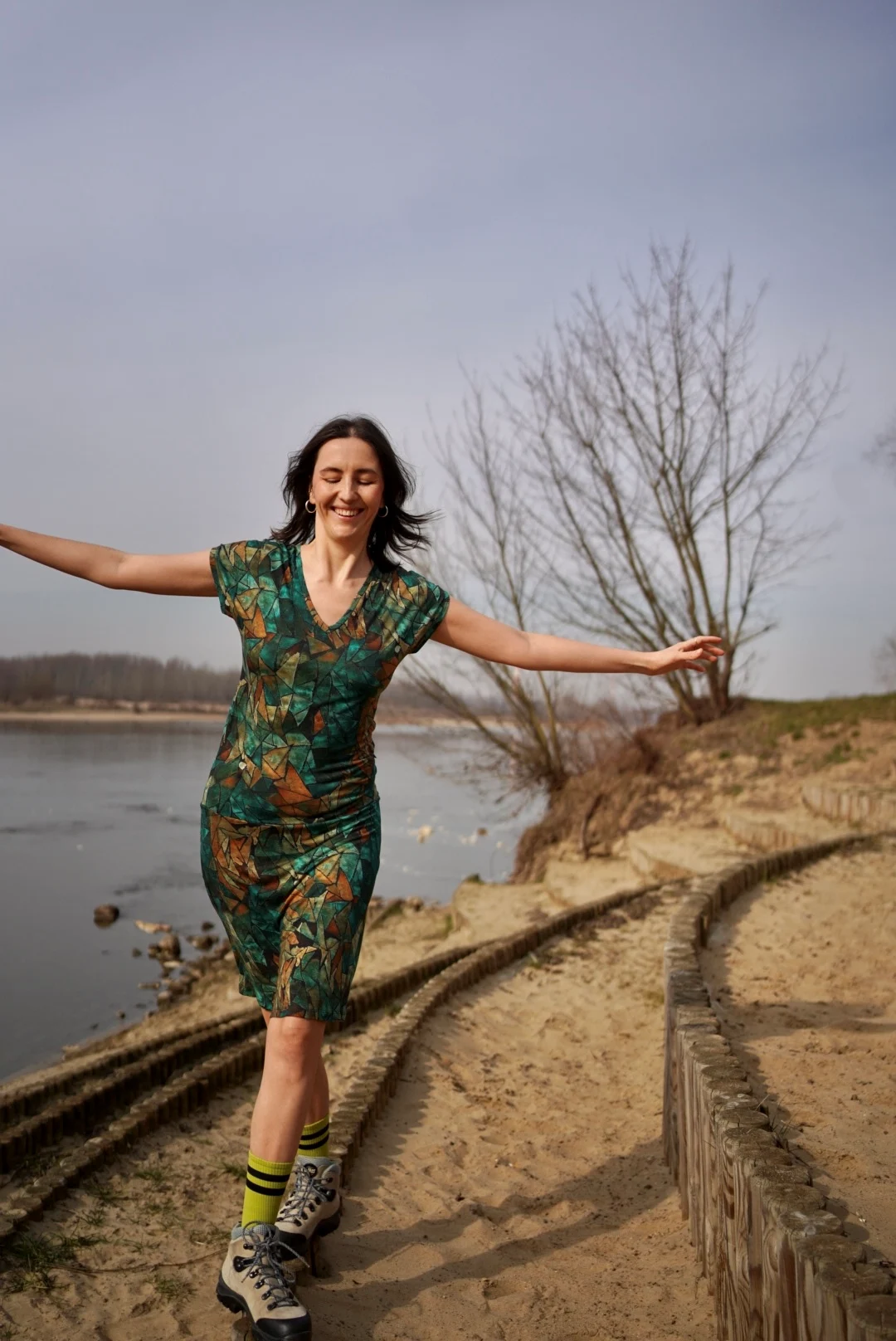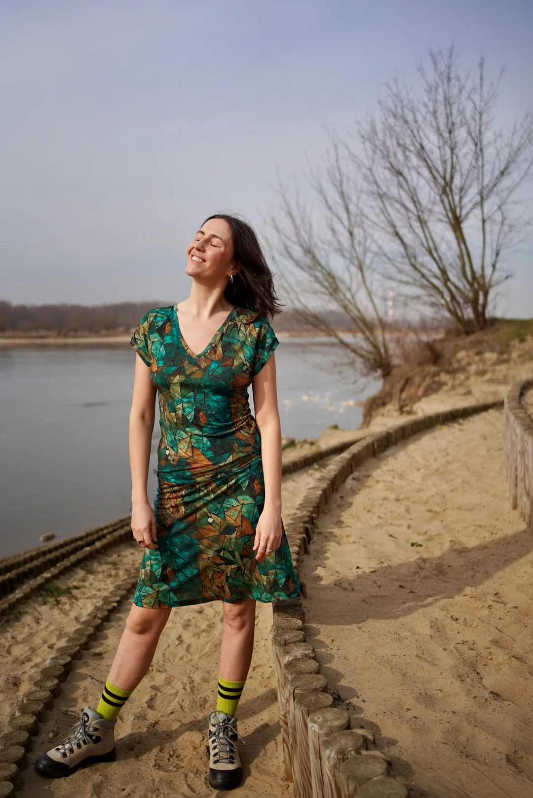 Šaty mají výstřih do V, který můžeš nosit vpředu nebo na zádech – podle nálady nebo příležitosti.