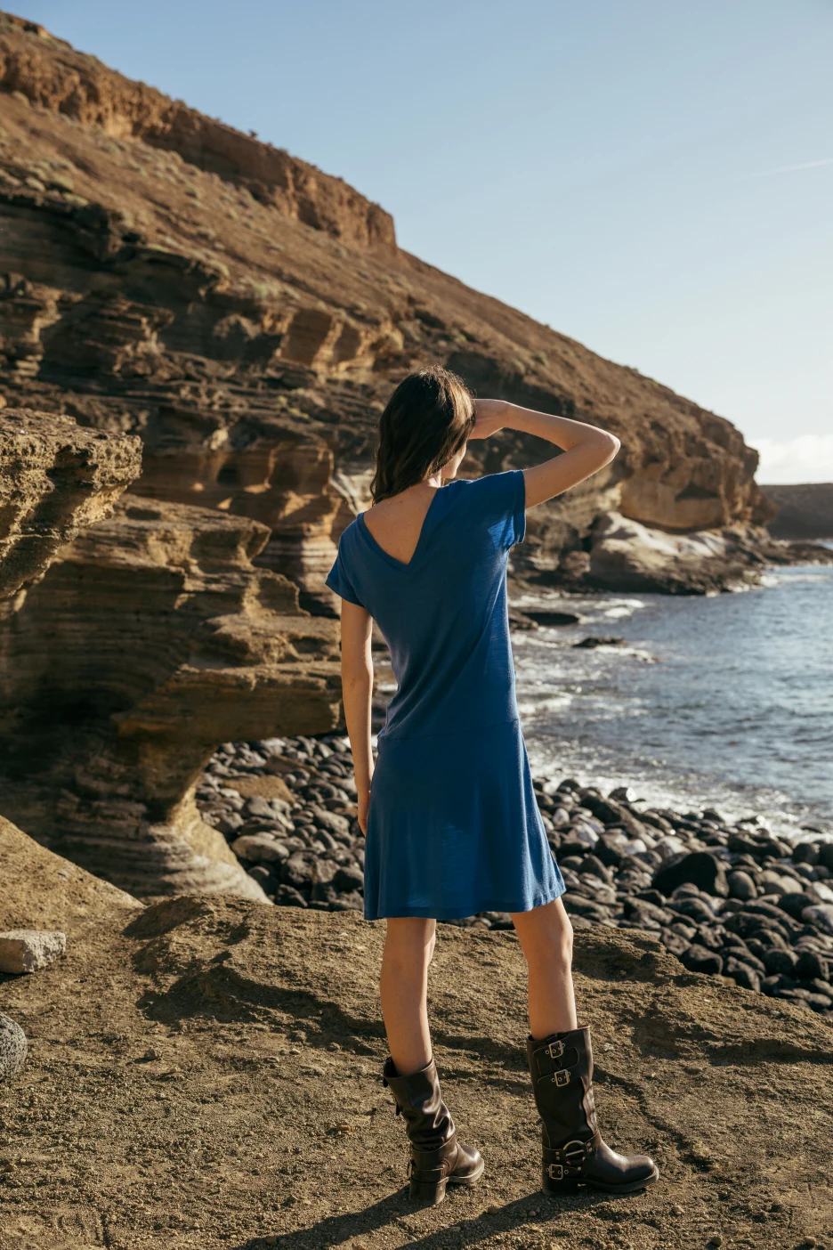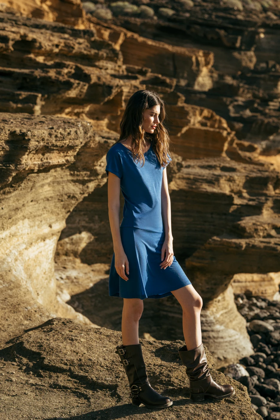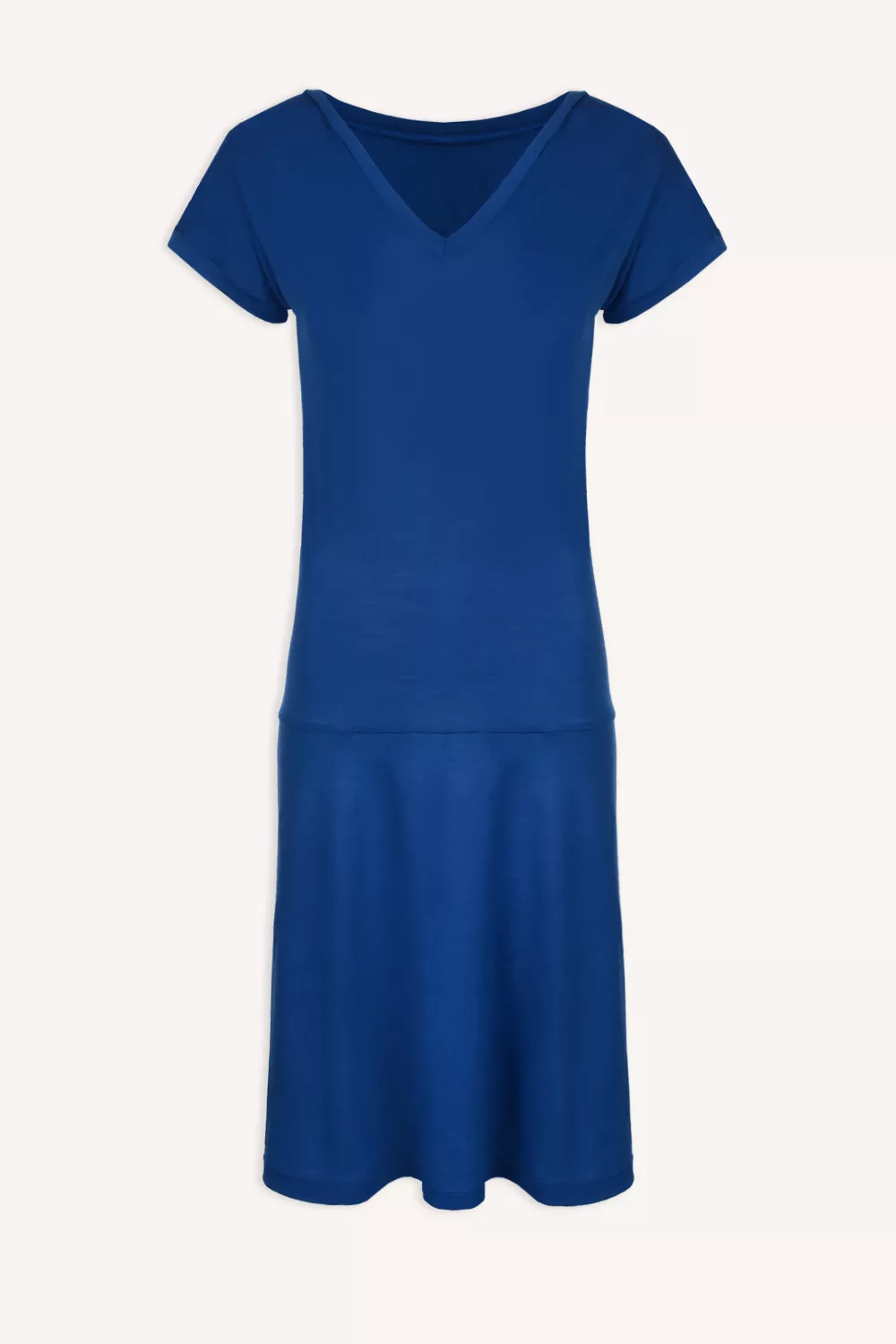 Kobaltové, jednoduché šaty ze 100% merino vlny s výstřihem do V. Lehké, měkké a příjemné na dotek. Fungují jako druhá kůže – téměř necítíte, že je máte na sobě.