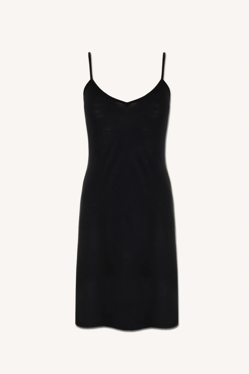 Merino SKIN dlouhá spodní košilka na ramínka – černá (135 g)