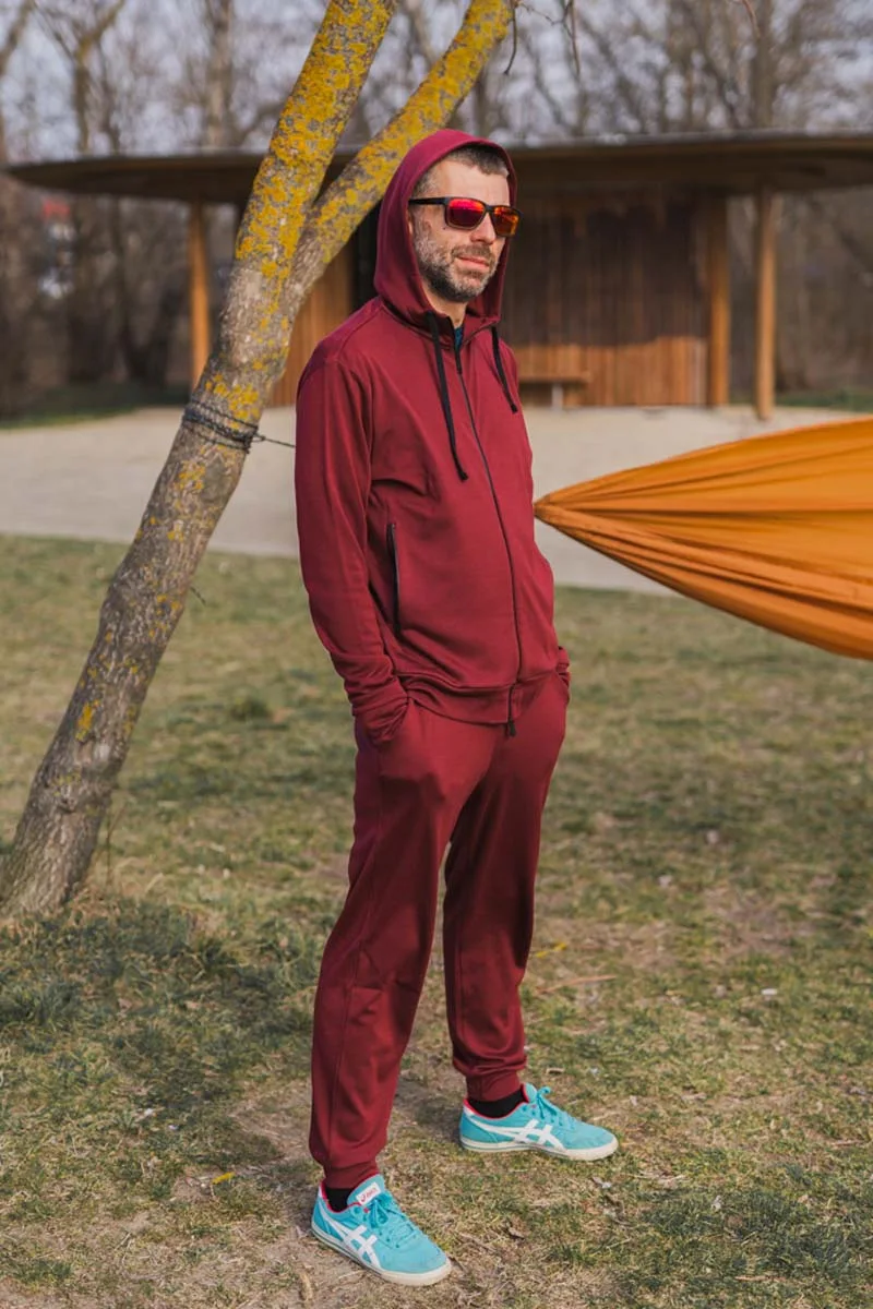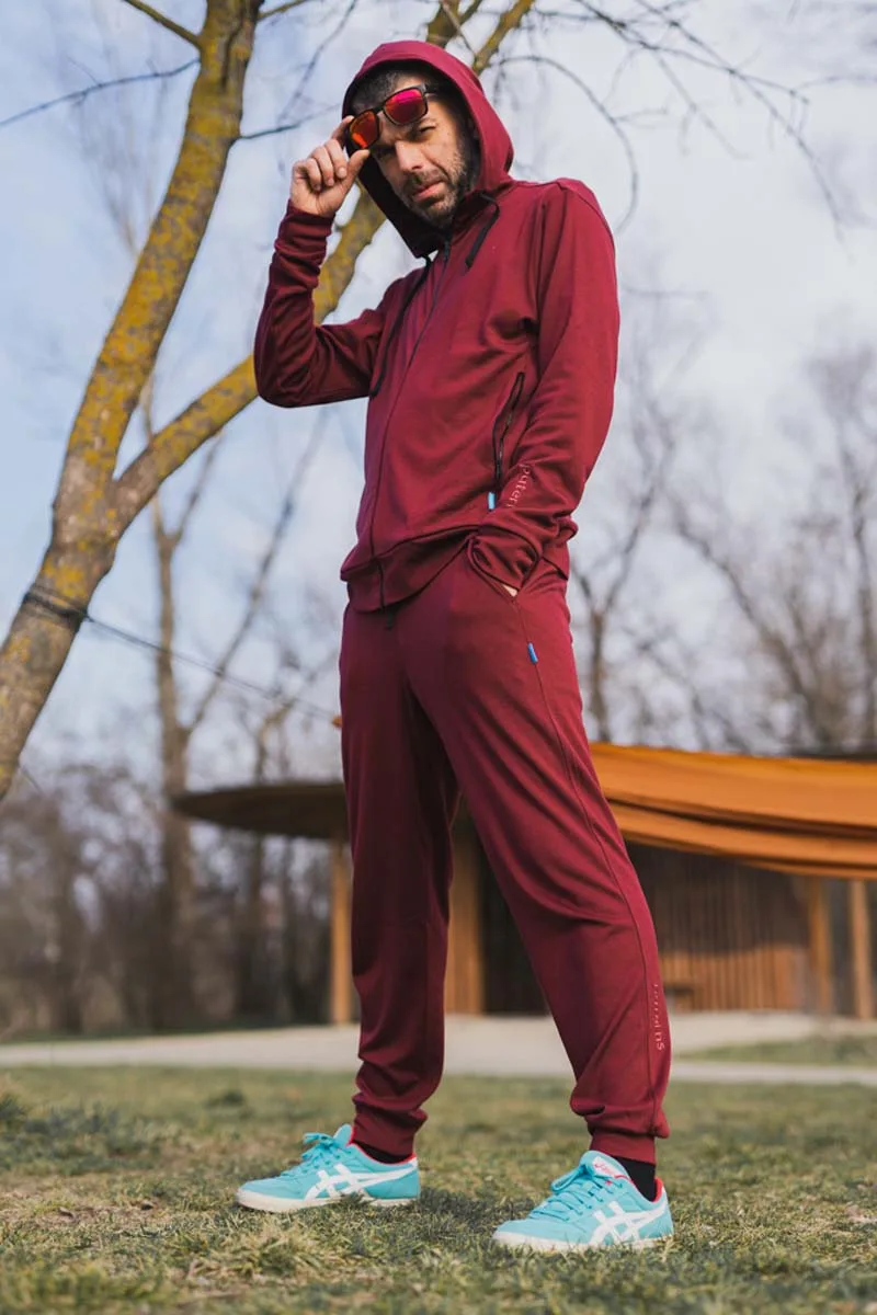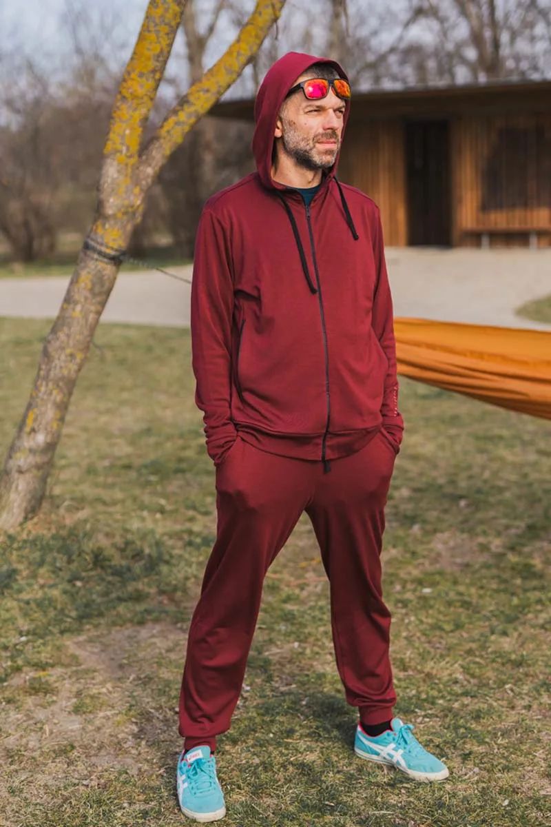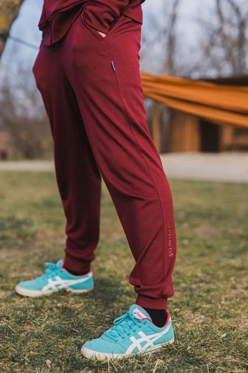 Pánské tepláky ze 100% merino vlny v barvě bordó.
