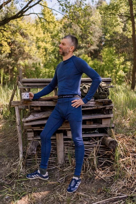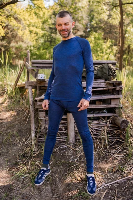 Teplé, termoakční pánské spodky z merino vlny v modrém melíru. Spodní díl termoprádla ze 100% merino vlny je ideální volbou pro podzimní a zimní sportovní aktivity na čerstvém vzduchu.