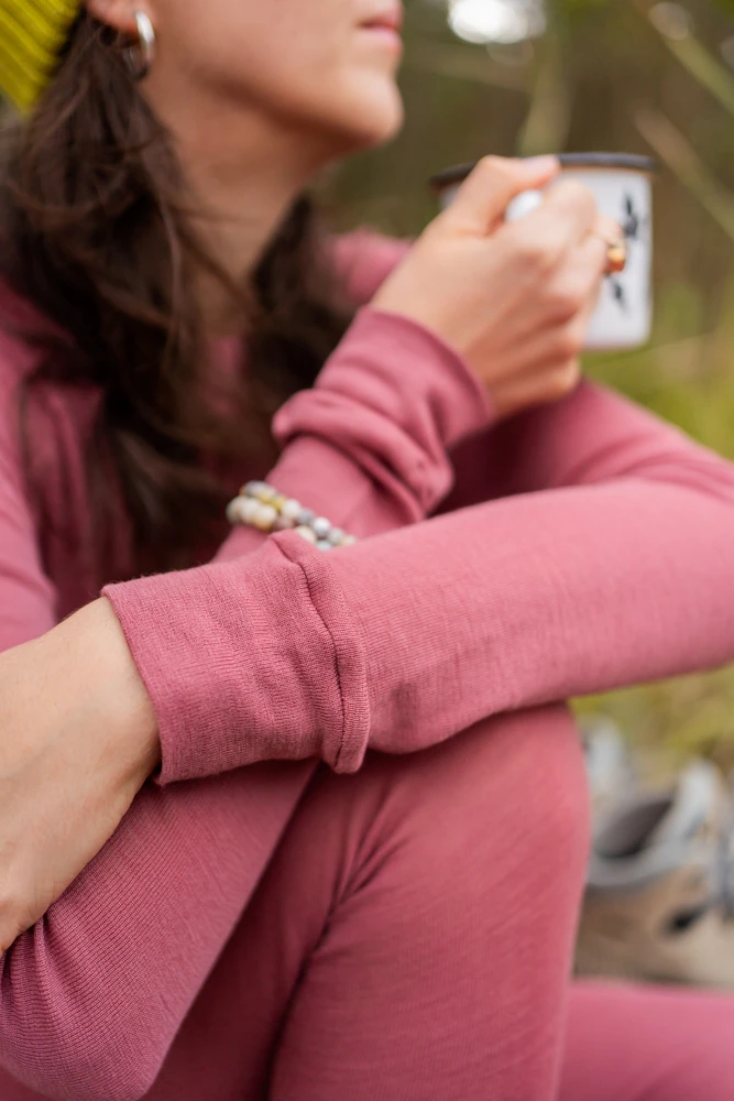 Dámské termoprádlo z 100% merino vlny – starorůžový top s dlouhým rukávem a stojáčkem ti poskytne výjimečný tepelný komfort v chladných dnech a zároveň se skvěle hodí jako funkční sportovní oblečení.