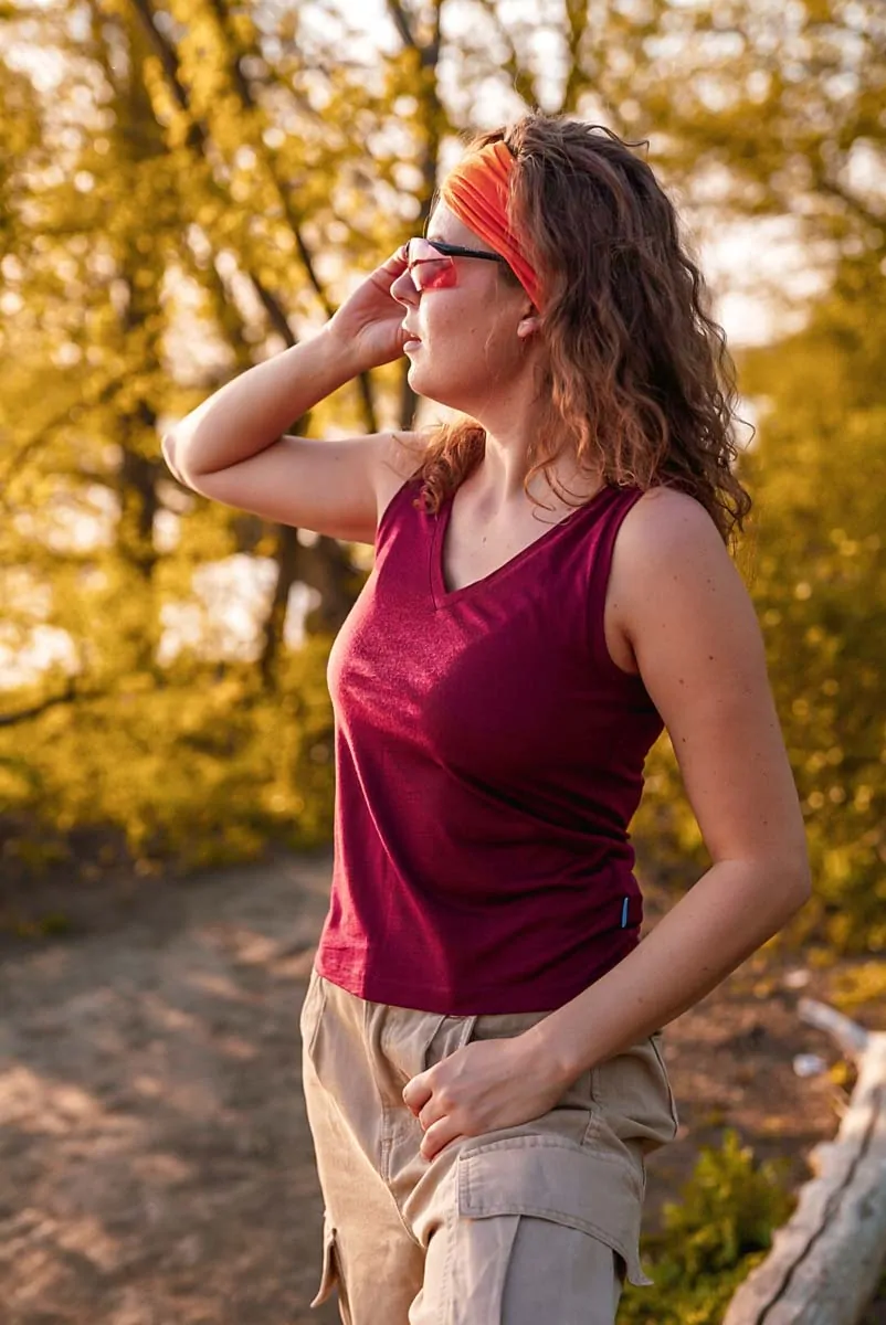 Merino top s výstřihem do V dámský – bordó (135 g)