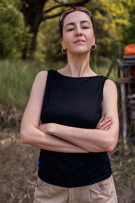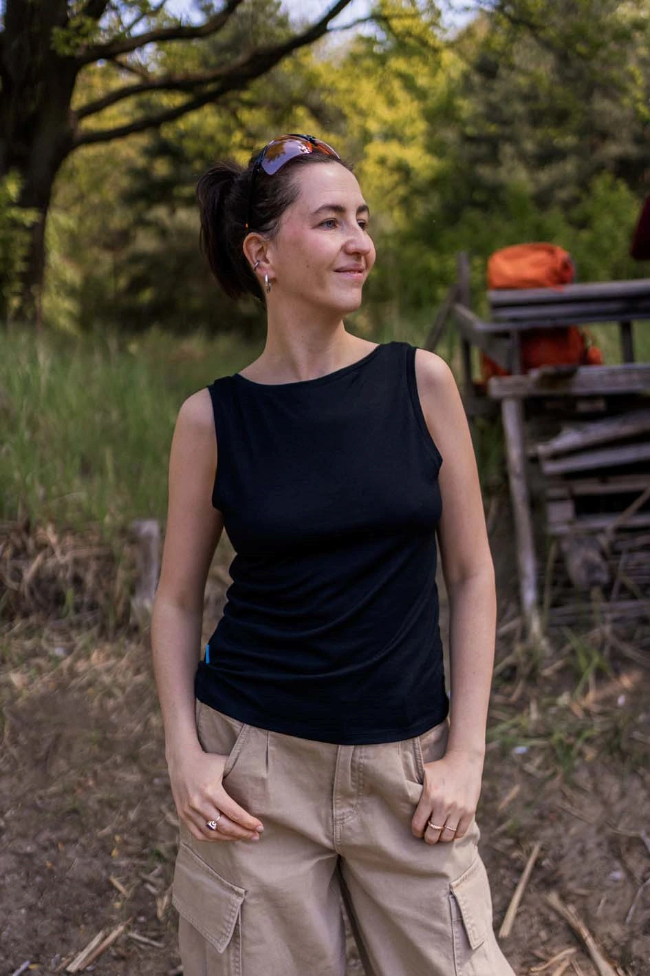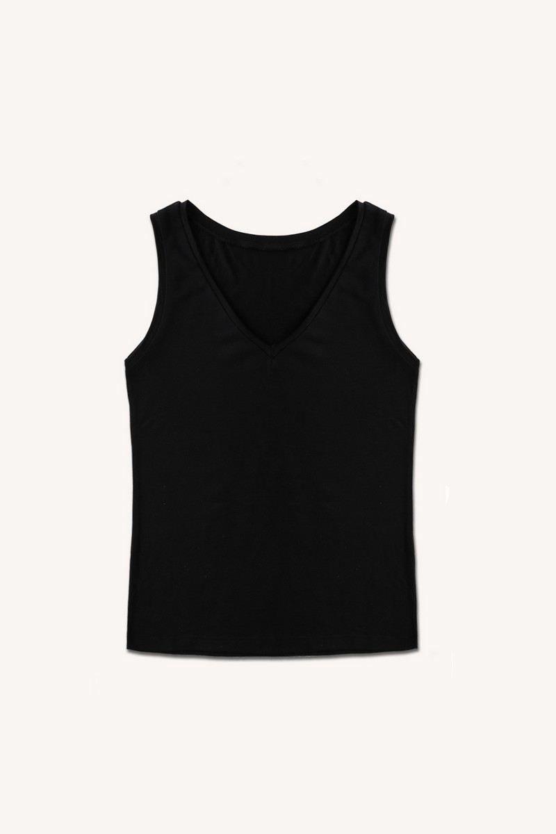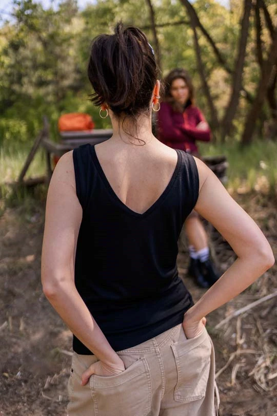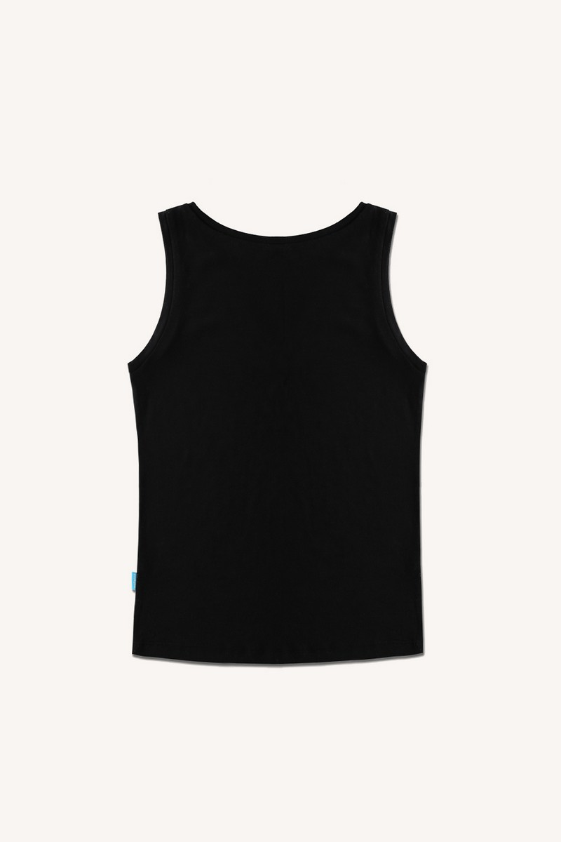 Dámský top bez rukávů z jemné merino vlny v černé barvě. Lehký, mírně zúžený střih se přizpůsobí postavě, ale nepřiléhá těsně k tělu – když si ho oblékneš, skoro ho necítíš.