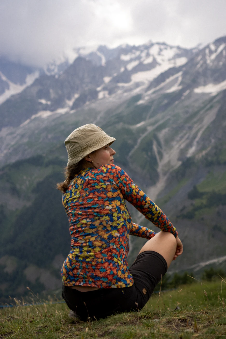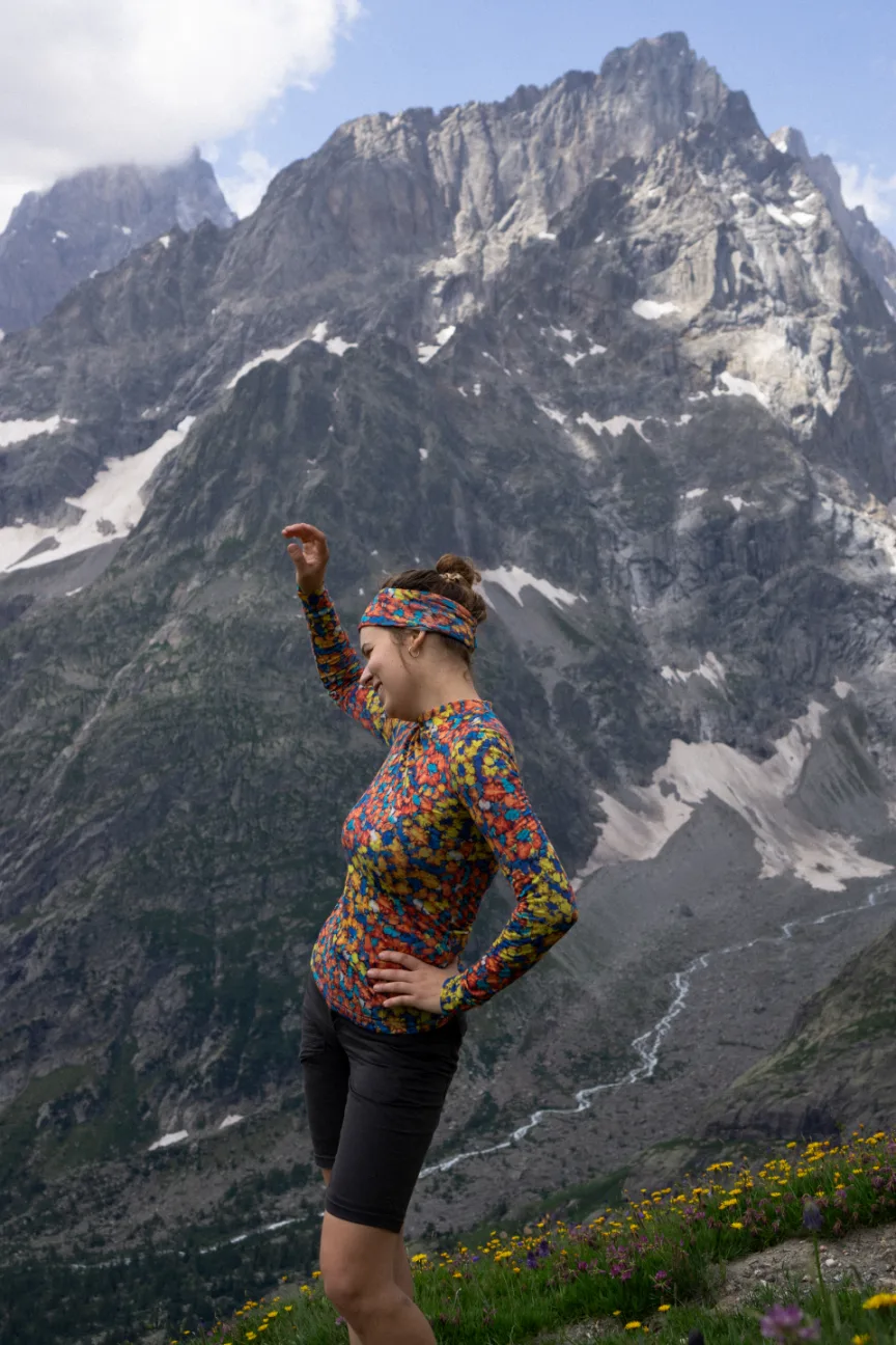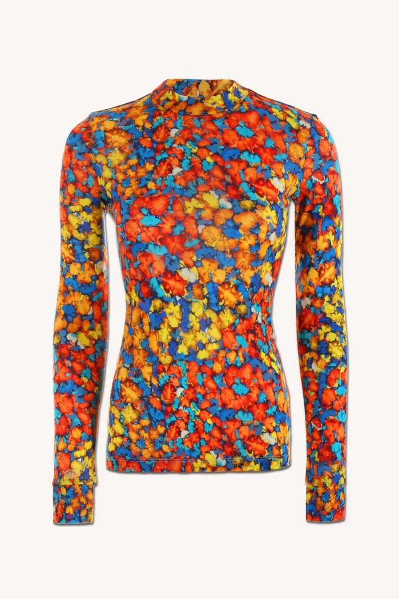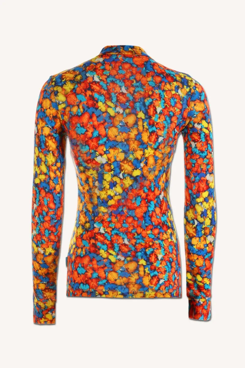 Motiv je přenesen na merino úplet digitálním tiskem, který zachovává jemnost vláken i plnou funkčnost materiálu.