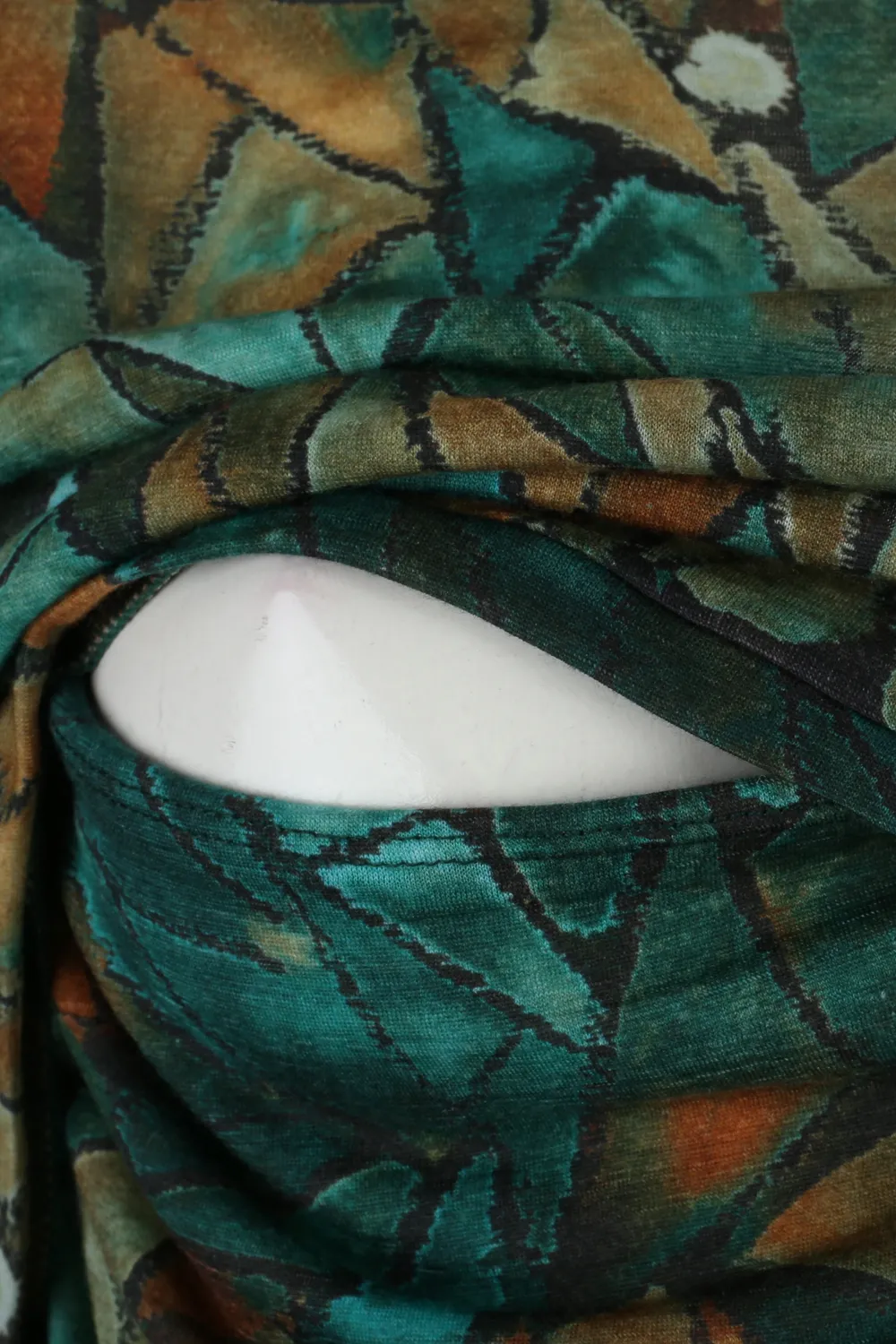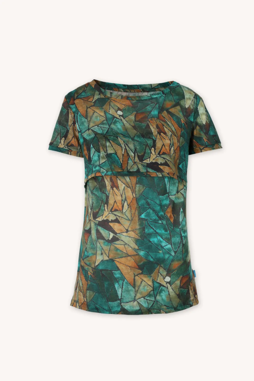 Funkční, prodyšné a přirozeně stylové – kojicí tričko z 100% merino vlny ve vzorovaném motivu green gorpcore spojuje outdoorový design s jemností přírodního materiálu.