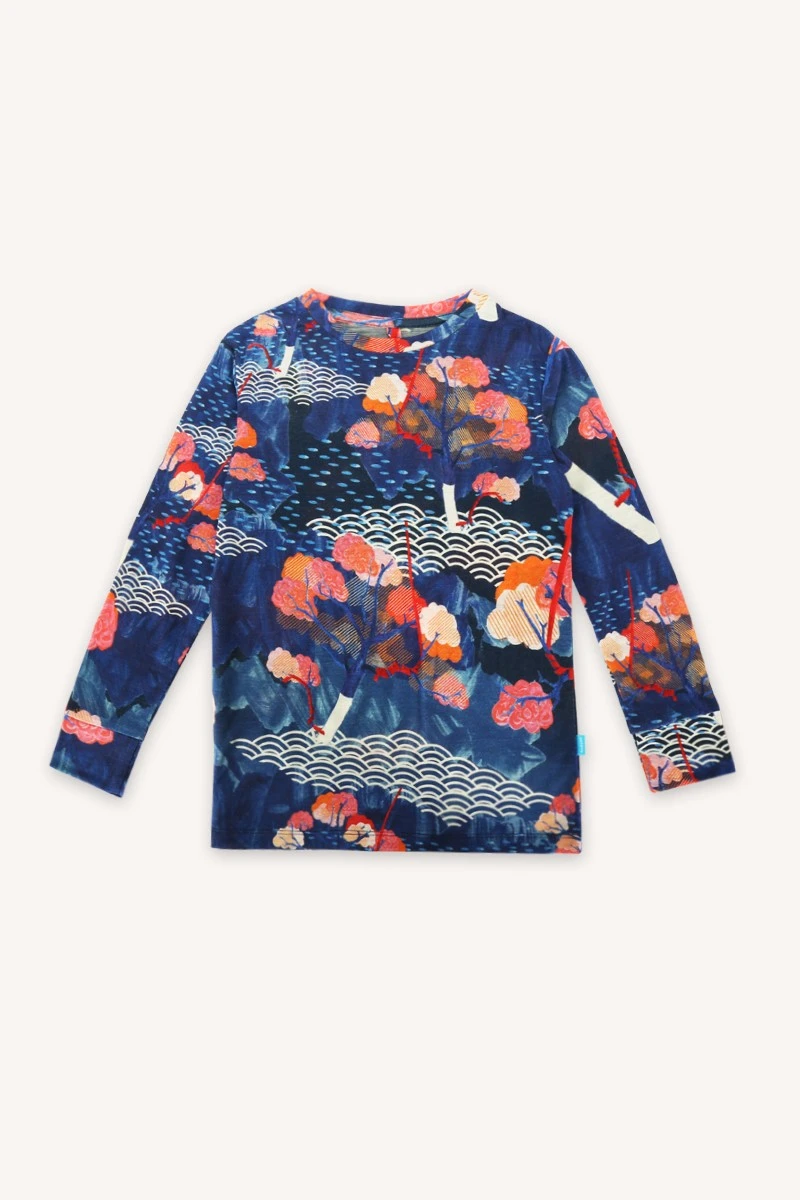 Vzor tengoku připomíná rajskou zahradu – „tengoku“ znamená v japonštině ráj. Stejný motiv najdete i na dámském a pánském oblečení, takže můžete sladit outfity celé rodiny. Každé tričko je originál – rozložení vzoru je jedinečné.