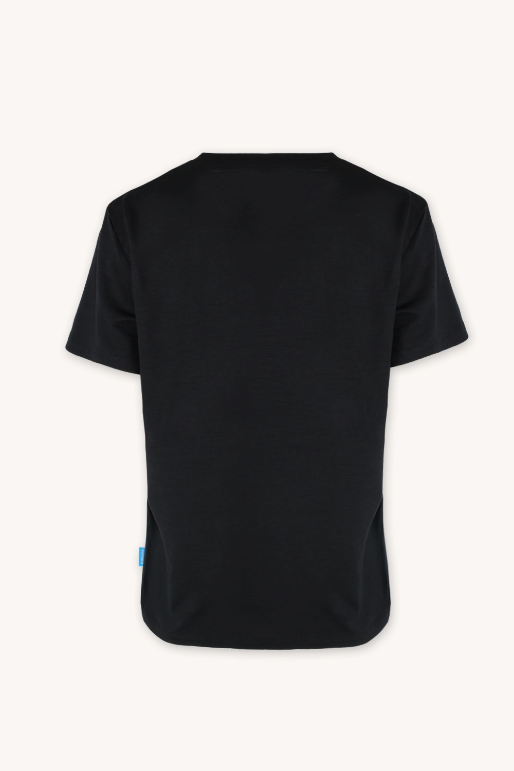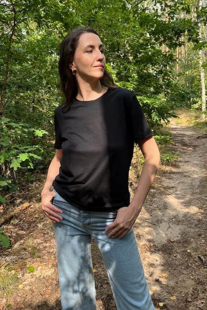 Klasické dámské merino tričko v černé barvě s kulatým výstřihem je univerzálním základem pro sport i každodenní nošení. Vyrobené ze 100% merino vlny o gramáži 135 g/m² – lehké, jemné a výjimečně prodyšné.