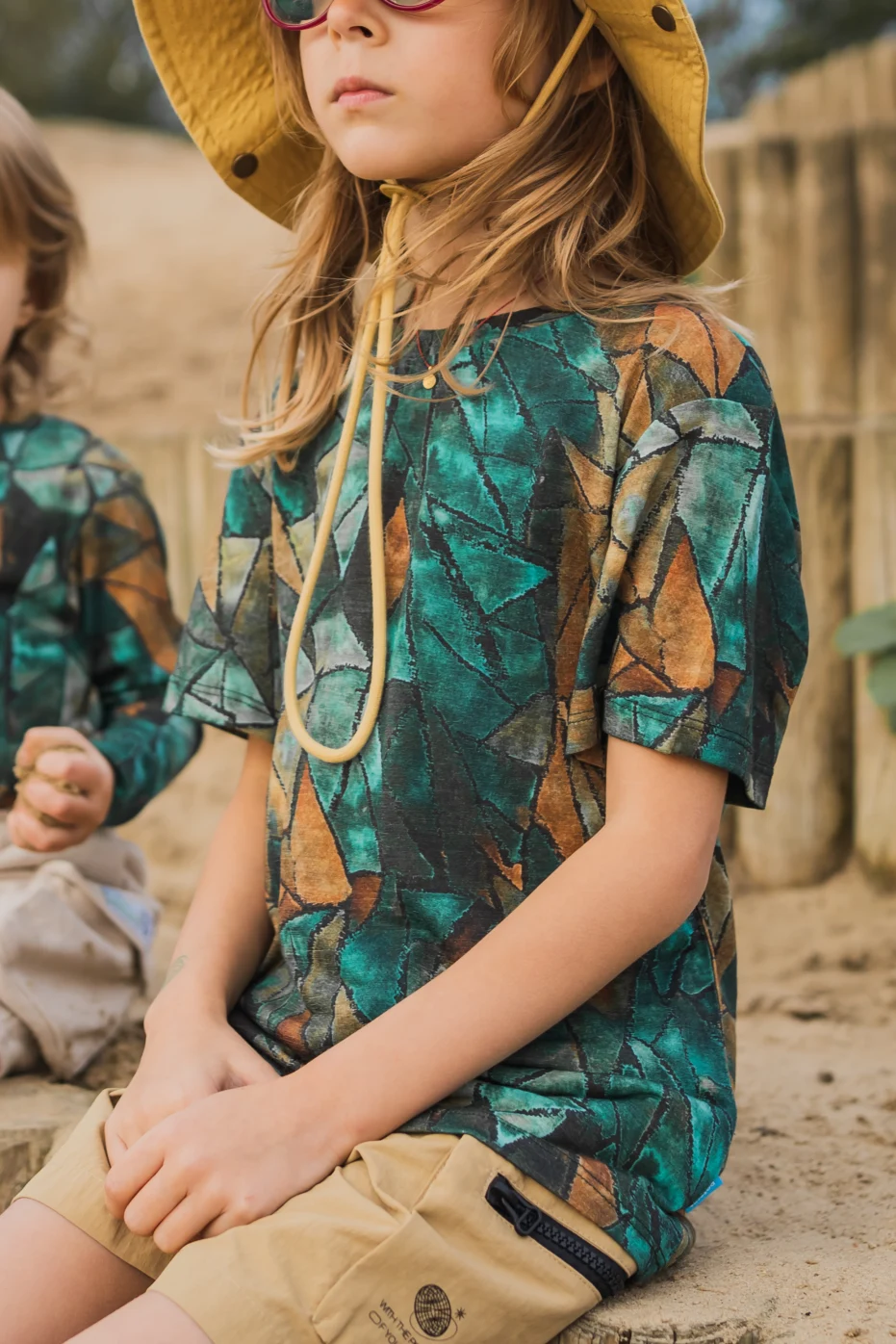 Barevné dětské merino tričko ve vzoru green gorpcore je ideální pro malé průzkumníky, kteří tráví rádi čas venku. Lehký úplet z 100 % merino vlny je měkký, prodyšný a příjemný na pokožce.