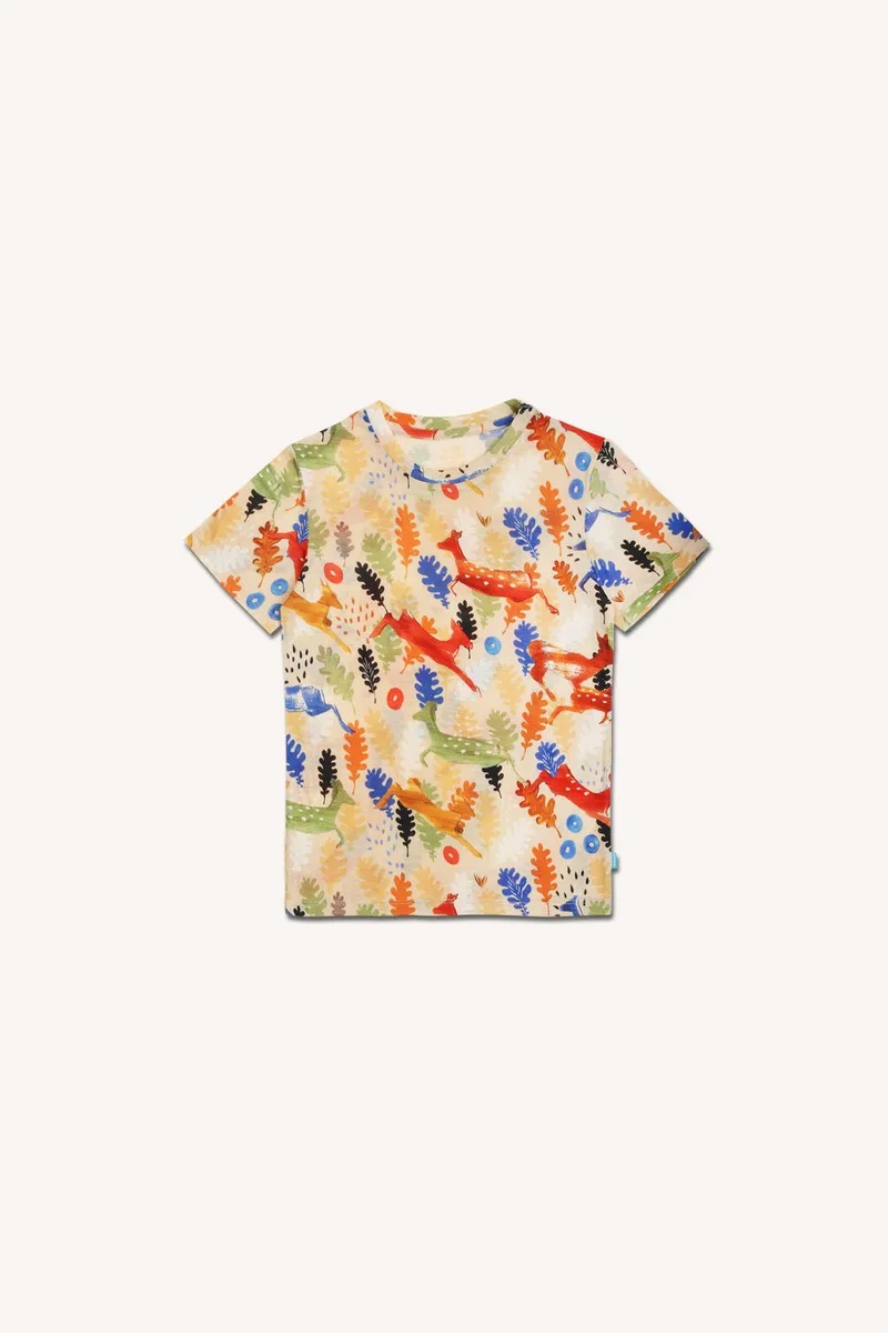 Dětské tričko z jemné merino vlny s krátkými rukávy a vzorem woods. Lehký, měkký a prodyšný kousek, který se postará o pohodlí dítěte při každém dobrodružství – od léta až po zimu.