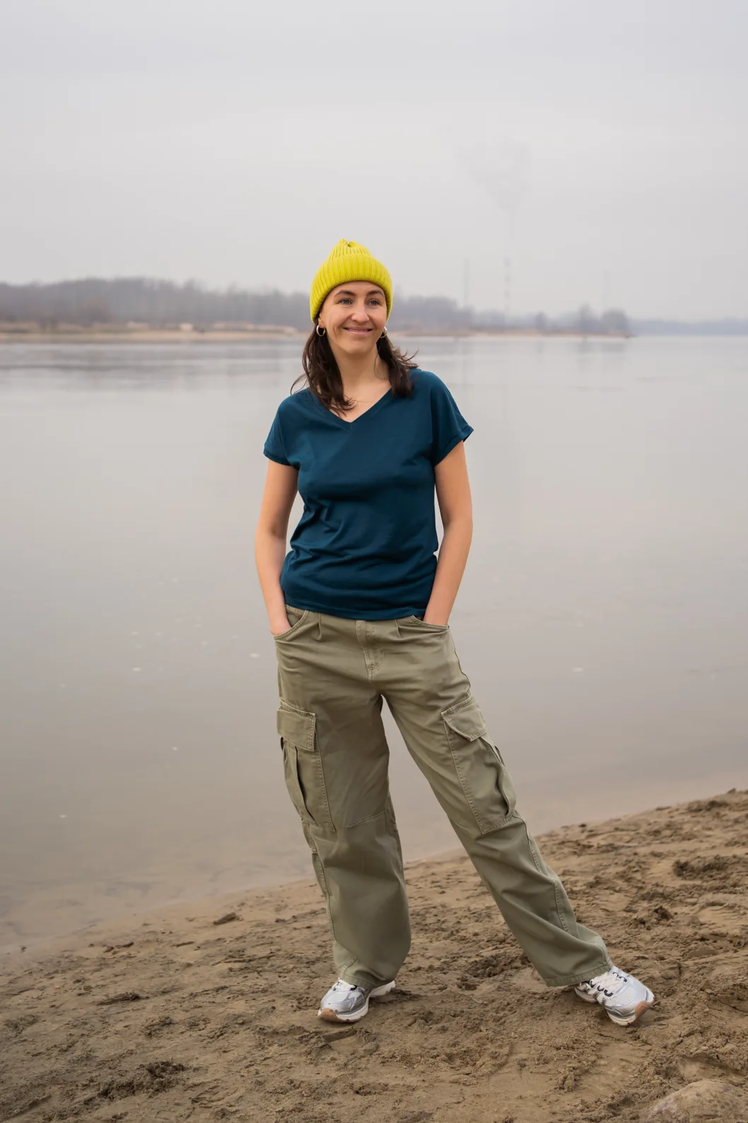 Merino tričko s výstřihem do V dámské – petrol (135 g)