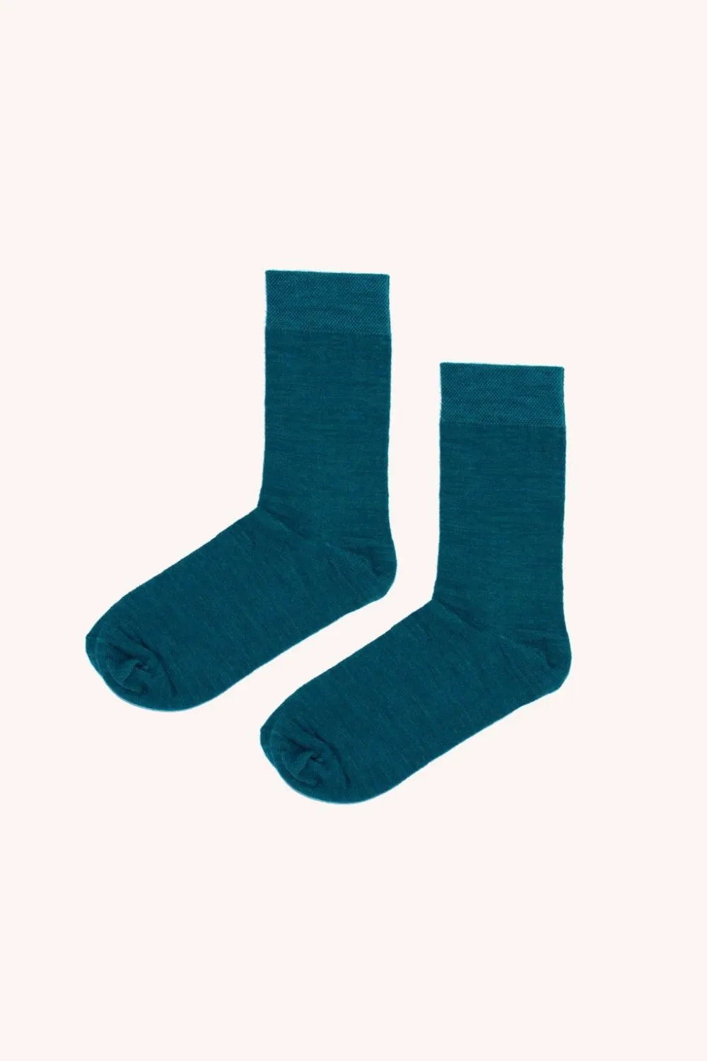 Ponožky z merino vlny vyrobené v Polsku v barvě petrol. Pokud ti často mrznou nohy nebo se naopak potí, tyhle ponožky budou přesně to, co hledáš.